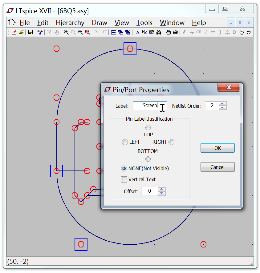 The "Pin Label Position" determines how the pin label is presented. "TOP", "BOTTOM", "LEFT", and "RIGHT" are text justifications. For example, if a pin label is TOP justified, the pin(the label's text justification's anchor point) will be above the label. If the symbol represents a SPICE primitive element or a subcircuit from a library, then the pin label has no direct electrical impact on the circuit. However, if the symbol represents lower-level schematic of a hierarchical schematic, then the pin name is significant as the name of a net in the lower level schematic.